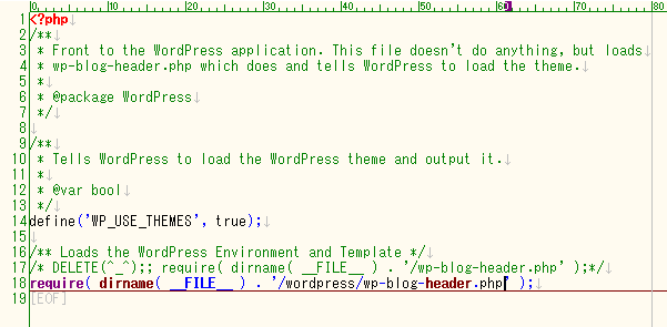 「 『/wordpress/wp-blog-header.php』と書いてあるところを、