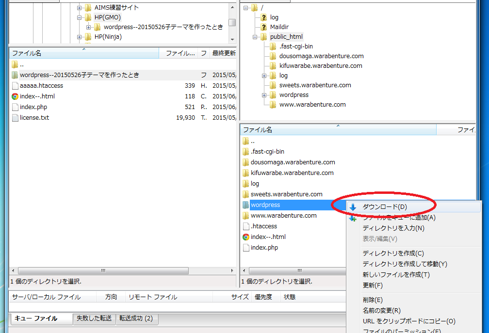 「これを 新しいWordPressのフォルダーに入れておいて、