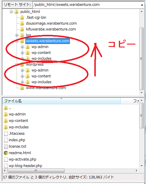 「sweets.warabenture.com フォルダーに中身をコピーして、