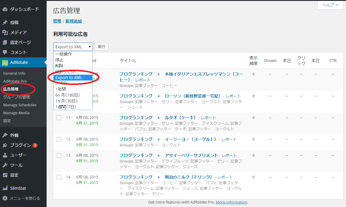 「AdRotateにも Export to XML があるな☆www