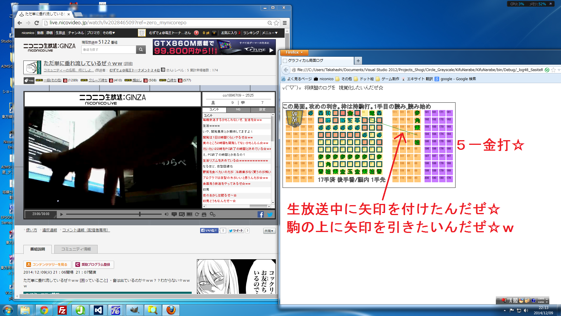 【将棋】めざせ世界コンピュータ将棋選手権☆(26) ログに色つきの透明矢印を引けるようにした☆ww