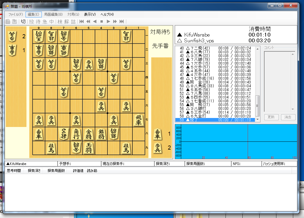 相手が穴熊に囲っていたせいもあって、59手まで生き延びた☆ww