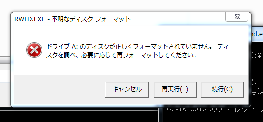 とりあえず 書き込みエラーのまま進め、