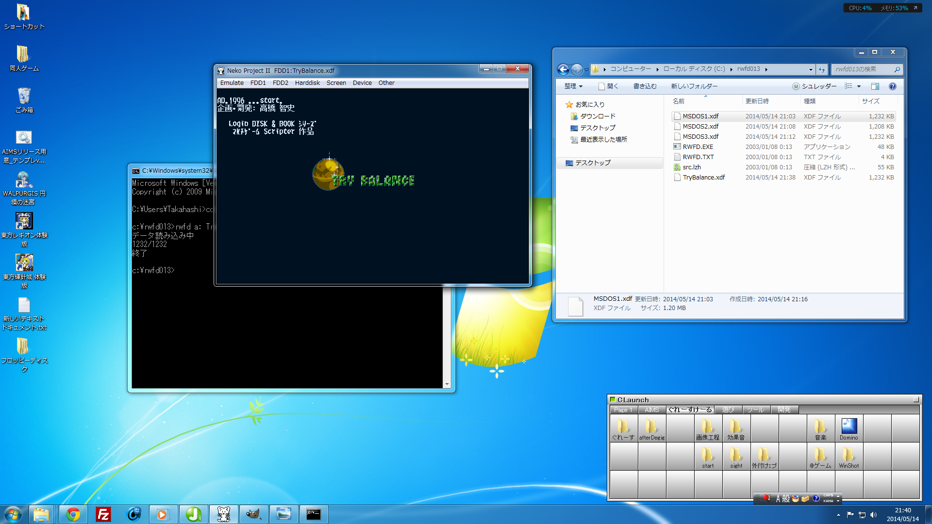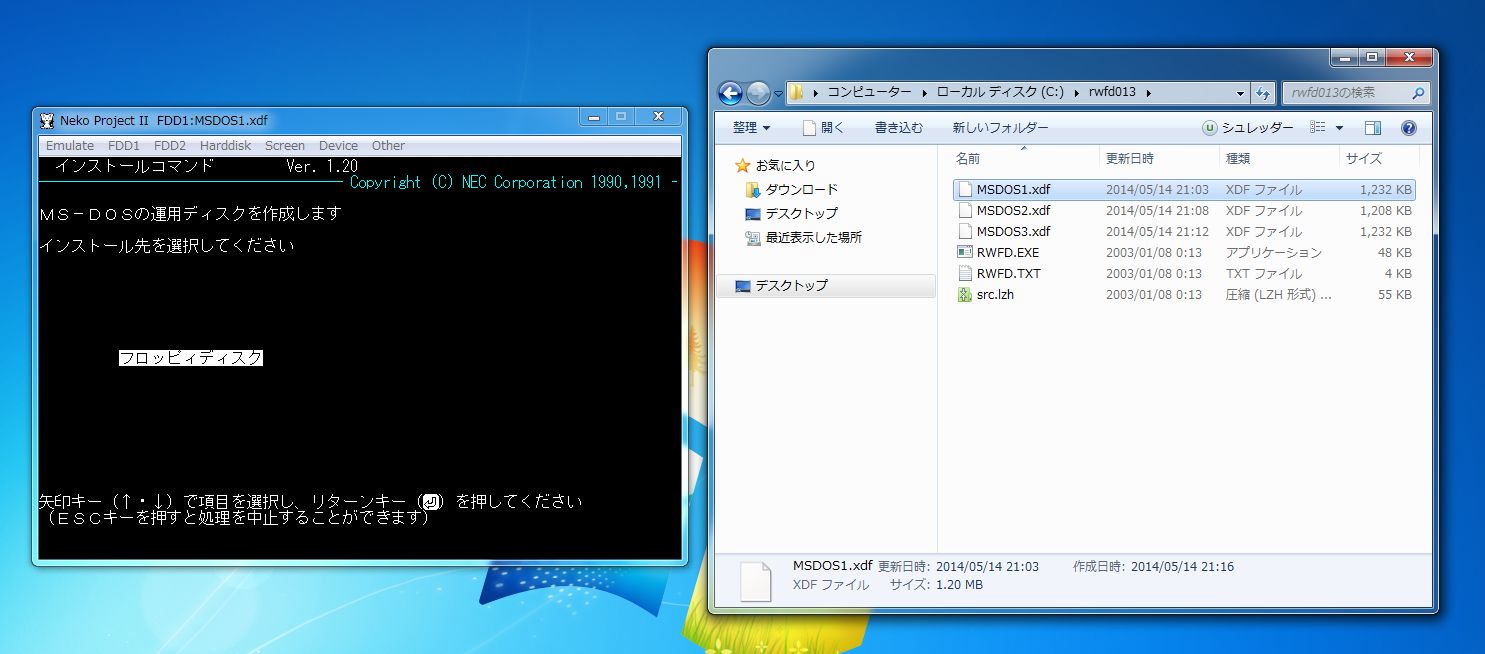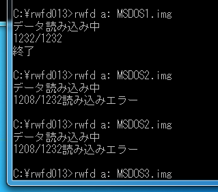[cmd] - [cd C:\rwfd013] - [rwfd a: <ゲーム名>.xdf]