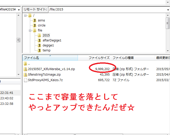 圧縮ファイルをサーバーに上げようとしているんだが、