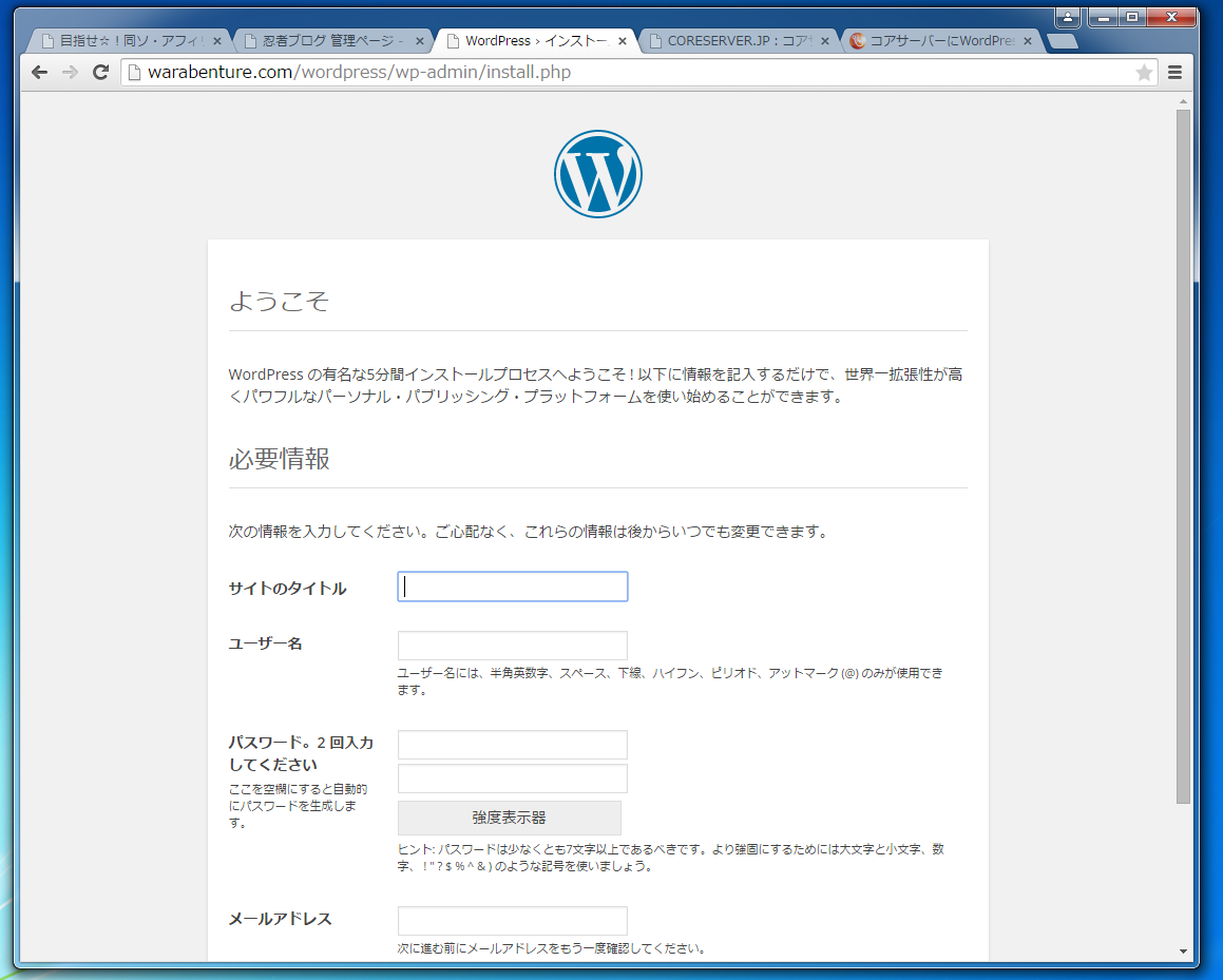 CORESERVER(コアサーバー)にWordPressをインストールする