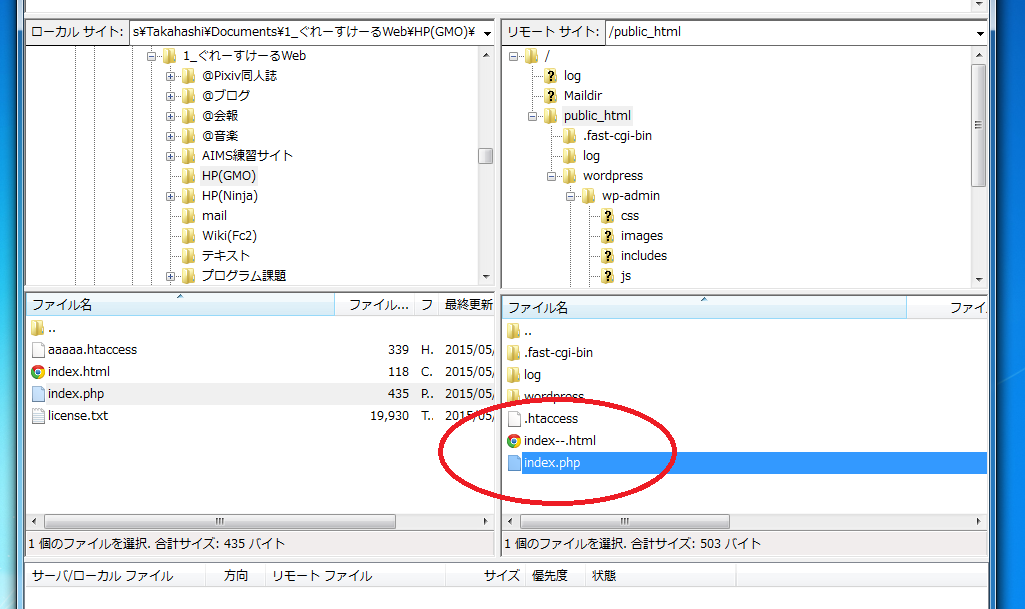 Filezilla を使って レンタル・サーバーの public_html フォルダーへ
