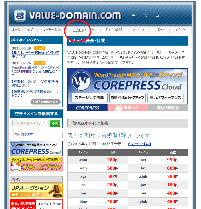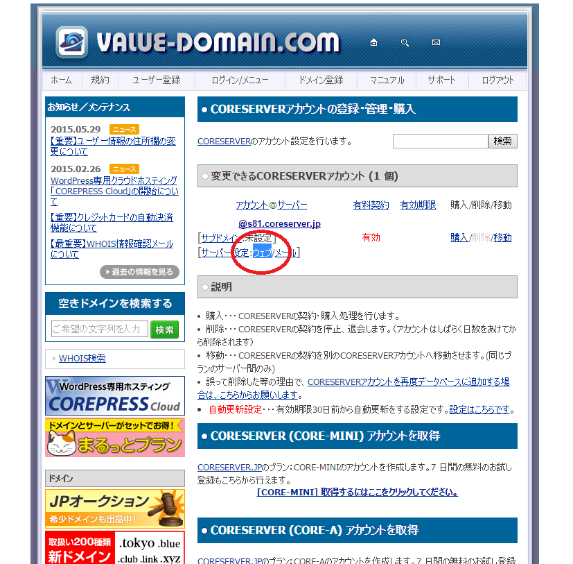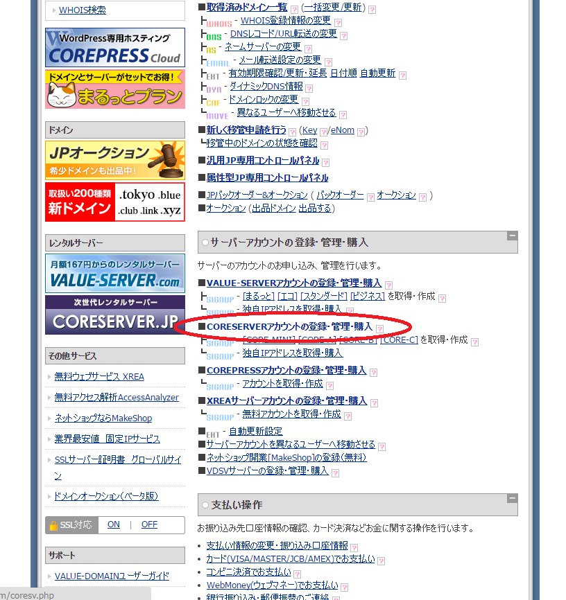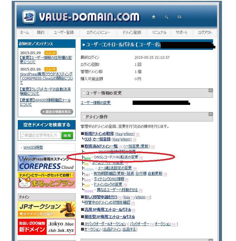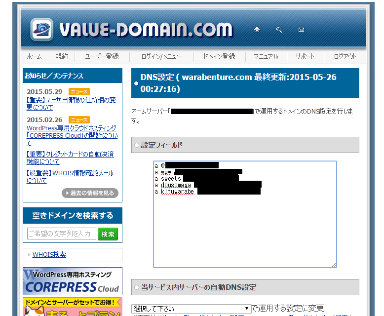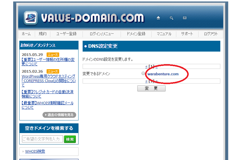 Value-Domainっていう会社がやってる ドメインの設定が