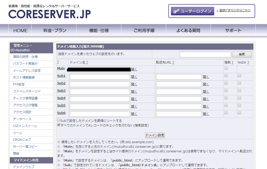サブドメインの設定