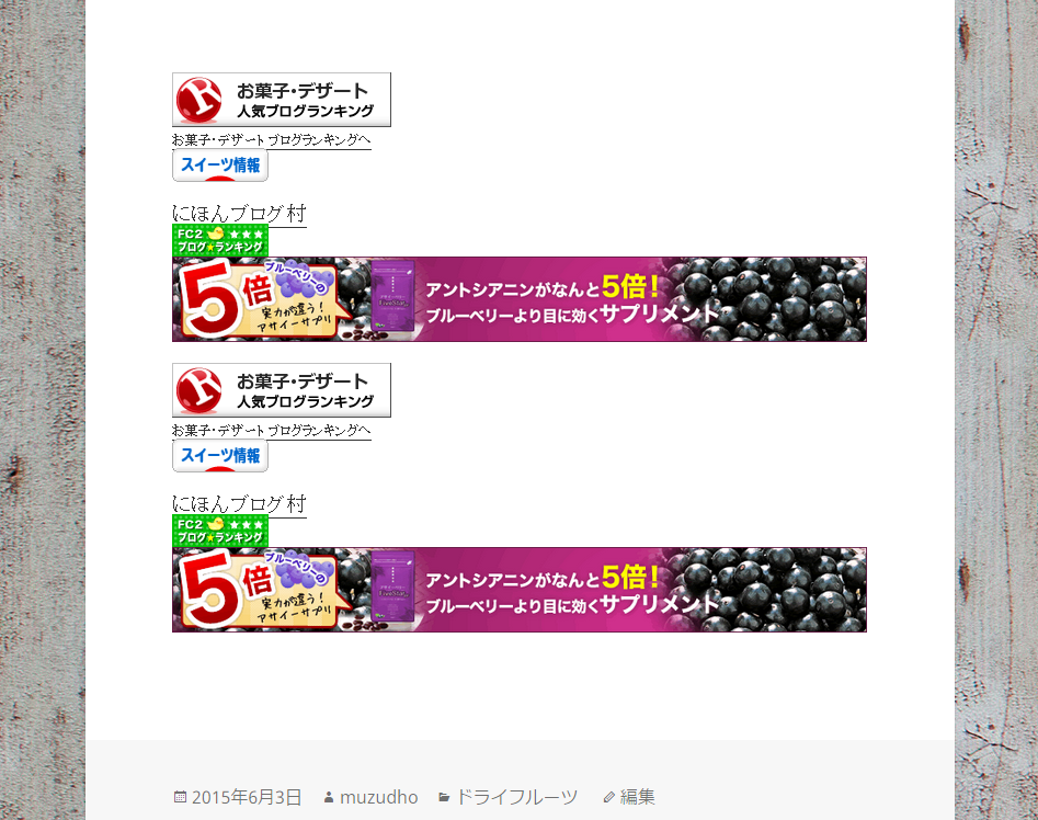 ドライフルーツの記事だけで、記事のあとに、その他用の広告が出る、