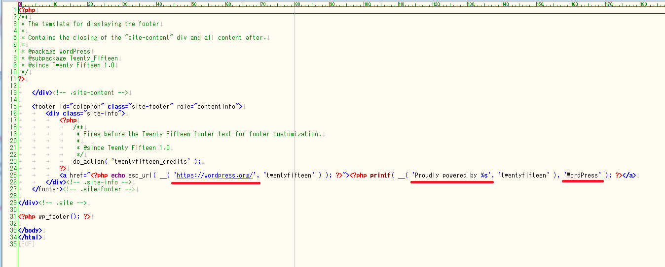 (↑子テーマの footer.php)