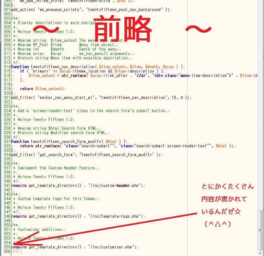 「次は、親テーマの functions.php と、子テーマの functions.php を見比べてみるんだぜ☆ 」