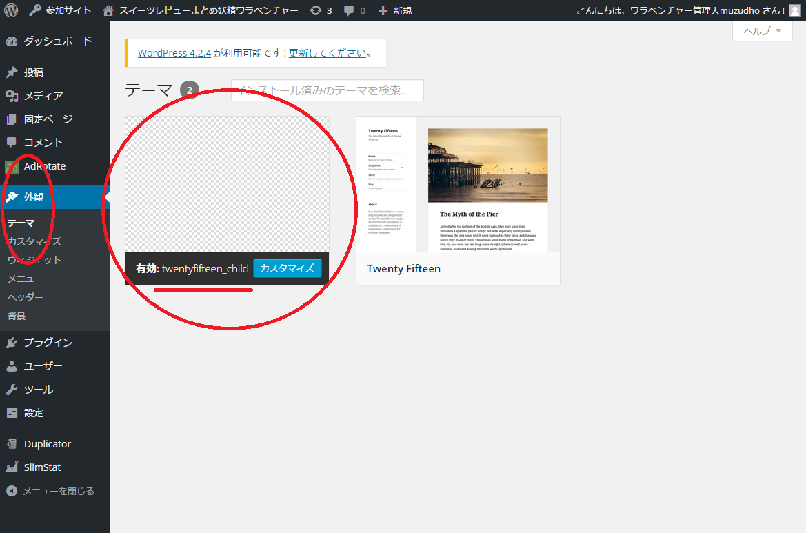 設定画面から、 子テーマ を選べるようにしたわけだな☆」
