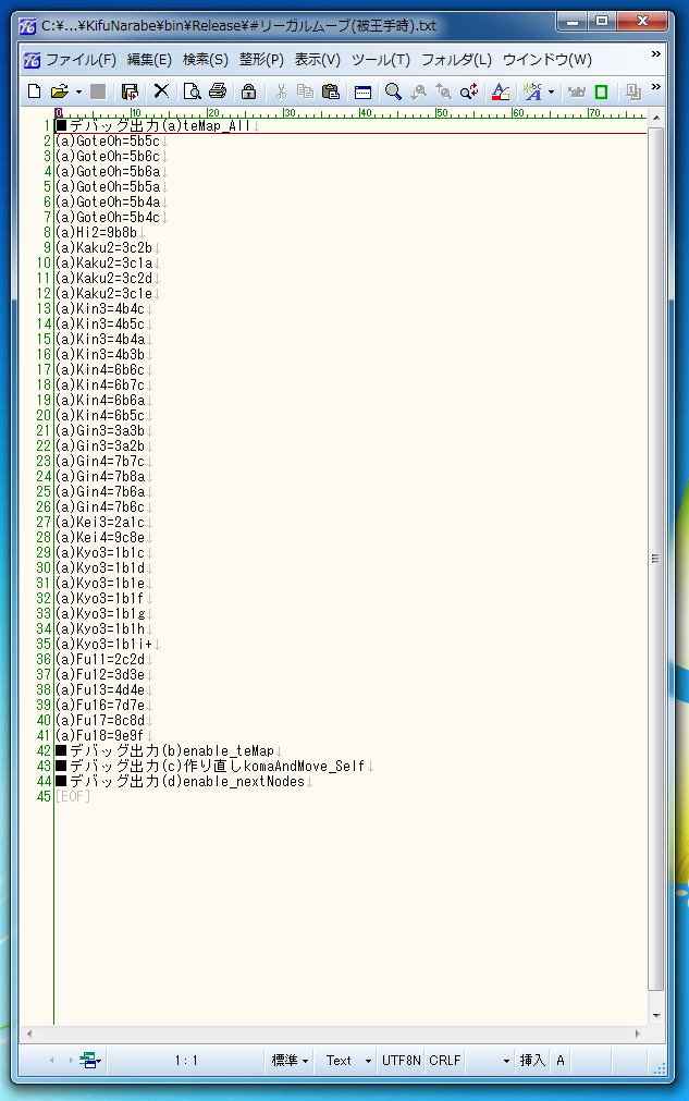 目標は 合法手を洗い出し、1手先の局面を読み、