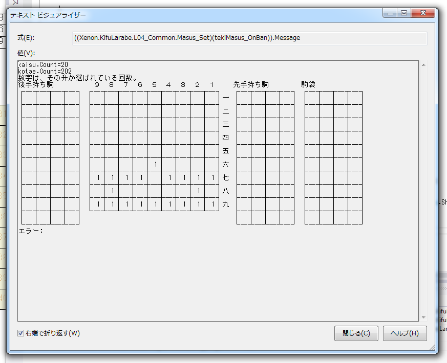 ↑この図は、後手の自陣の駒を調べた結果なんだぜ☆