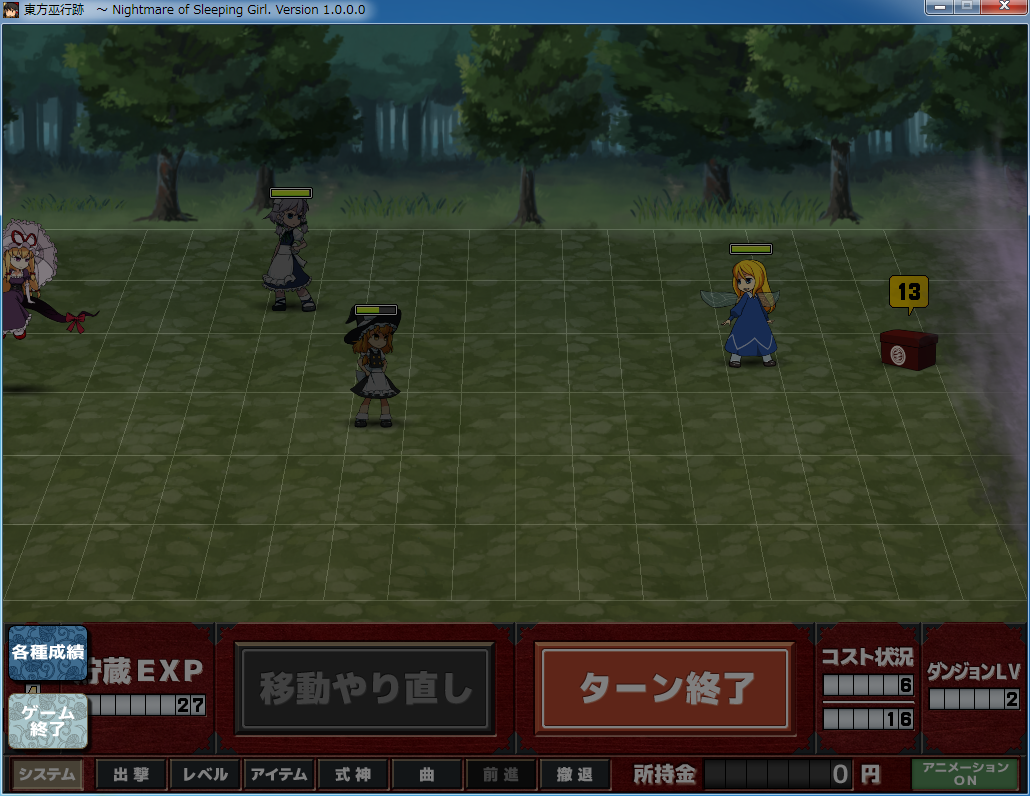 前進ボタンを押すことで 画面全体が1マス進んで宝箱が出てきたぜ☆