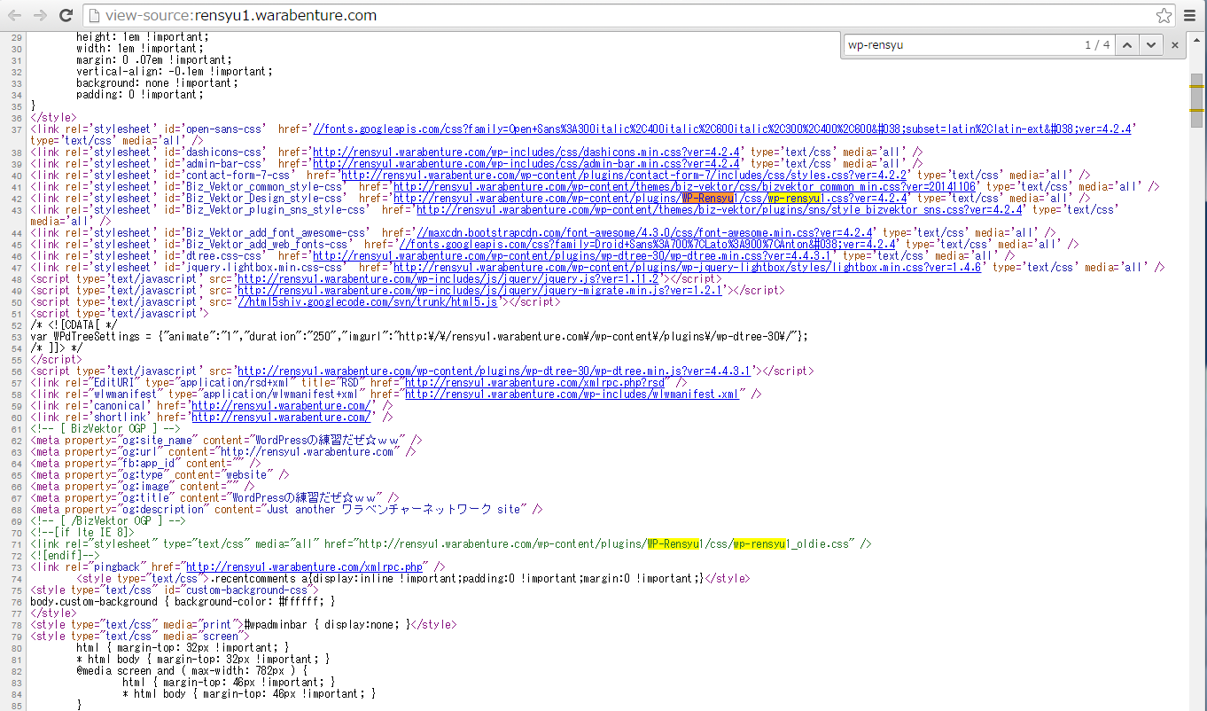 「2箇所に わたしのプラグインの 2つの .css が組み込まれているんだぜ☆ww」