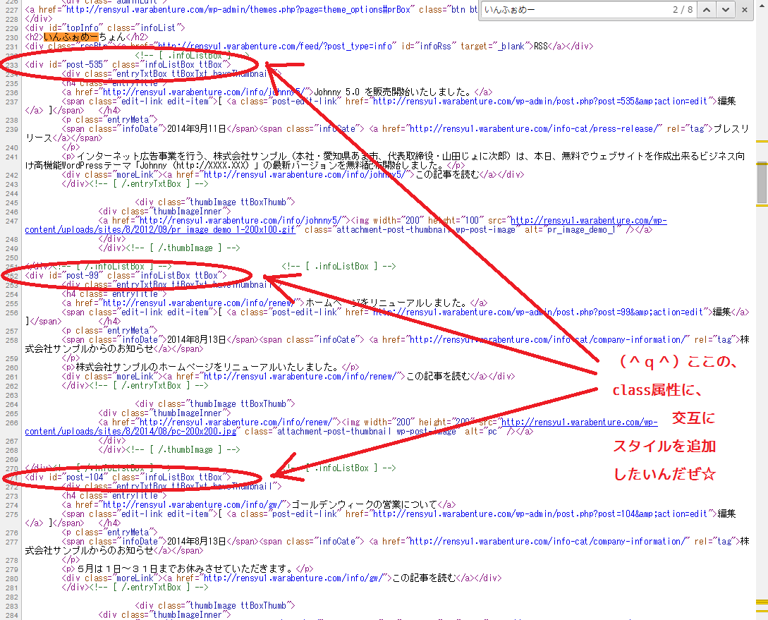 「class属性に infoListBox を付けると、ずれるみたいだぜ☆