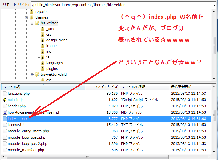 「index.phpをリネームしても ブログは表示されている☆wwwww