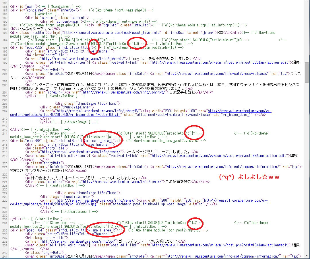 どこで module_loop_post2.php を使っているのか分からないんだぜ☆