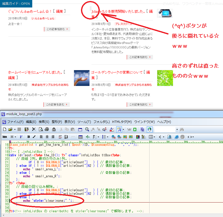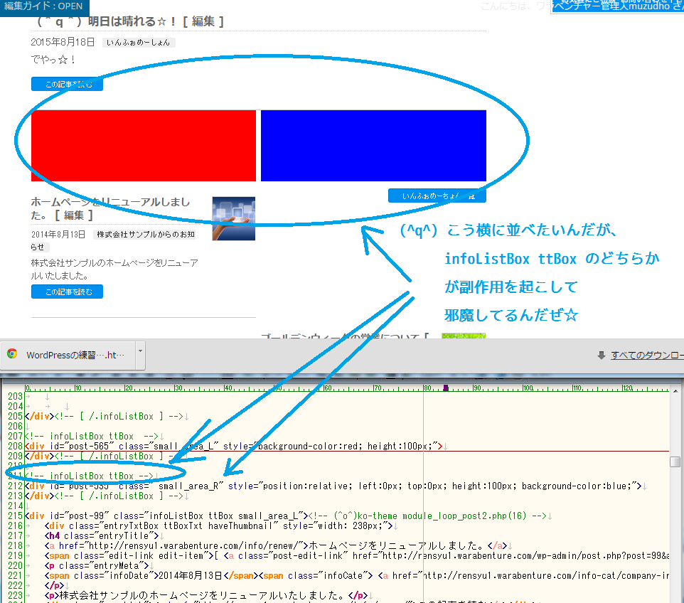「infoListBox は、clear:both; とだけ書いてあるな☆ 調べてみるぜ☆」