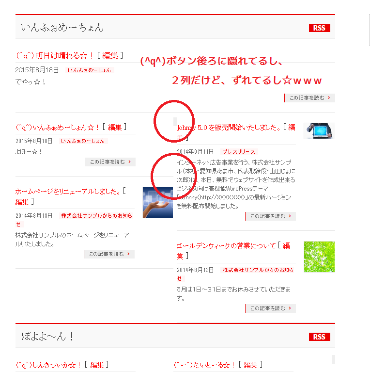 infoListBox には、記事は1行に1つだ、みたいな設定でも付いているのかなんだぜ☆?」